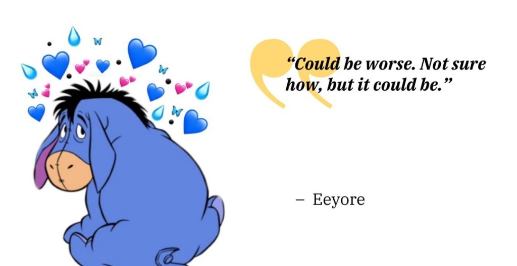 I am unashamedly a Winnie the Pooh fan. This week, though, I want to focus on Eeyore. We all have a little Eeyore in us, don’t we?
